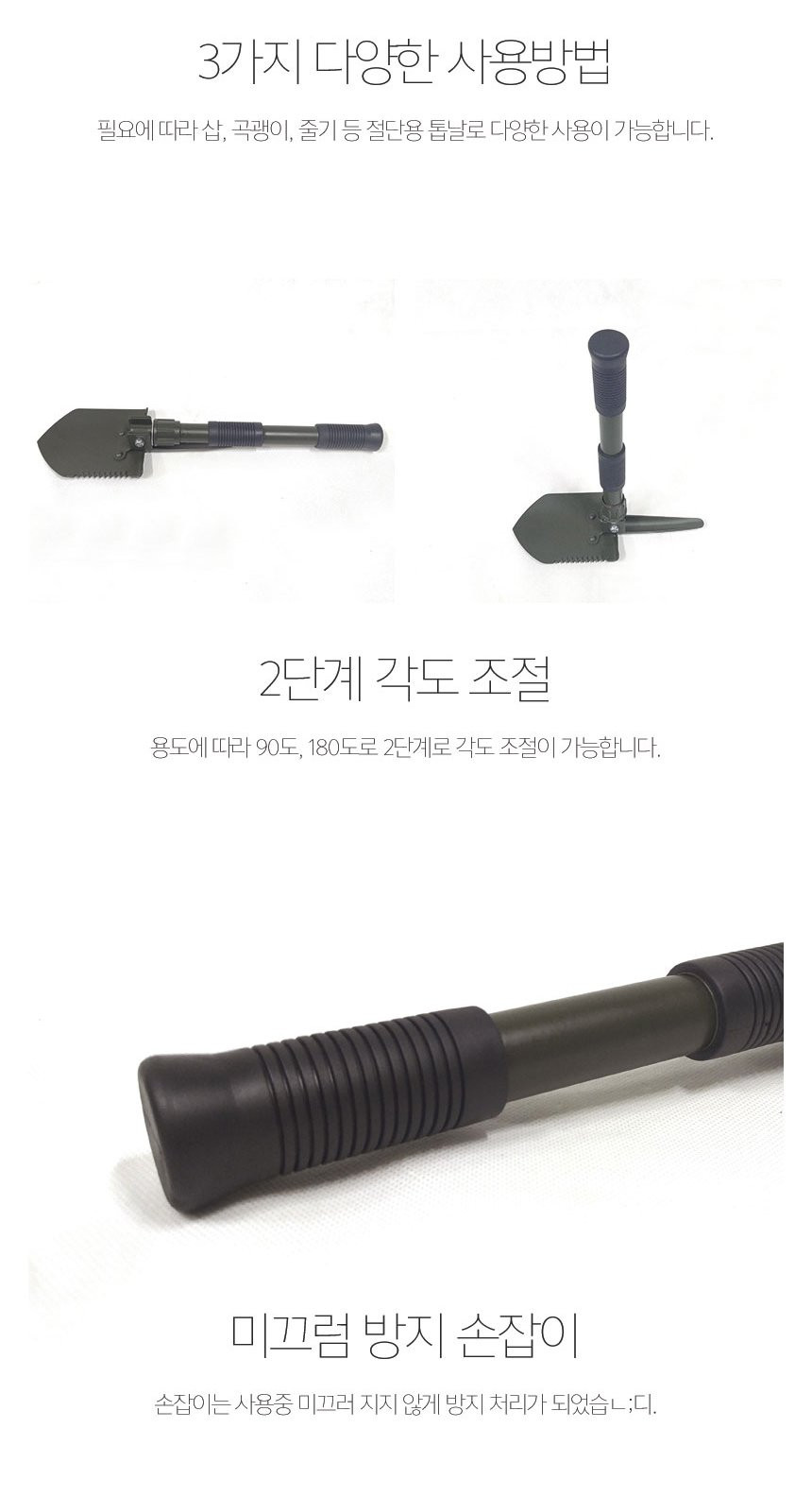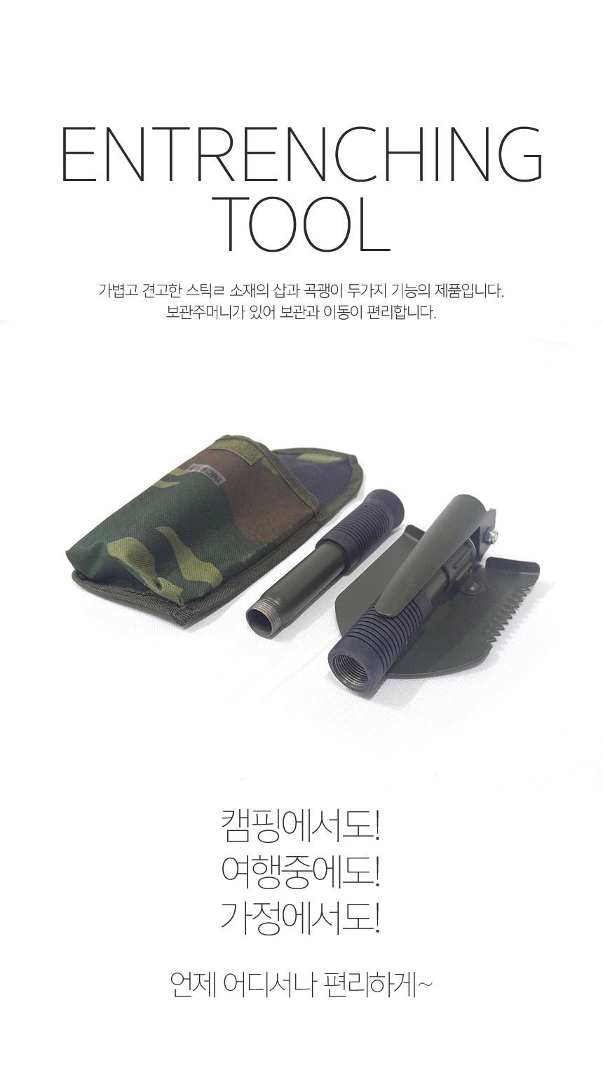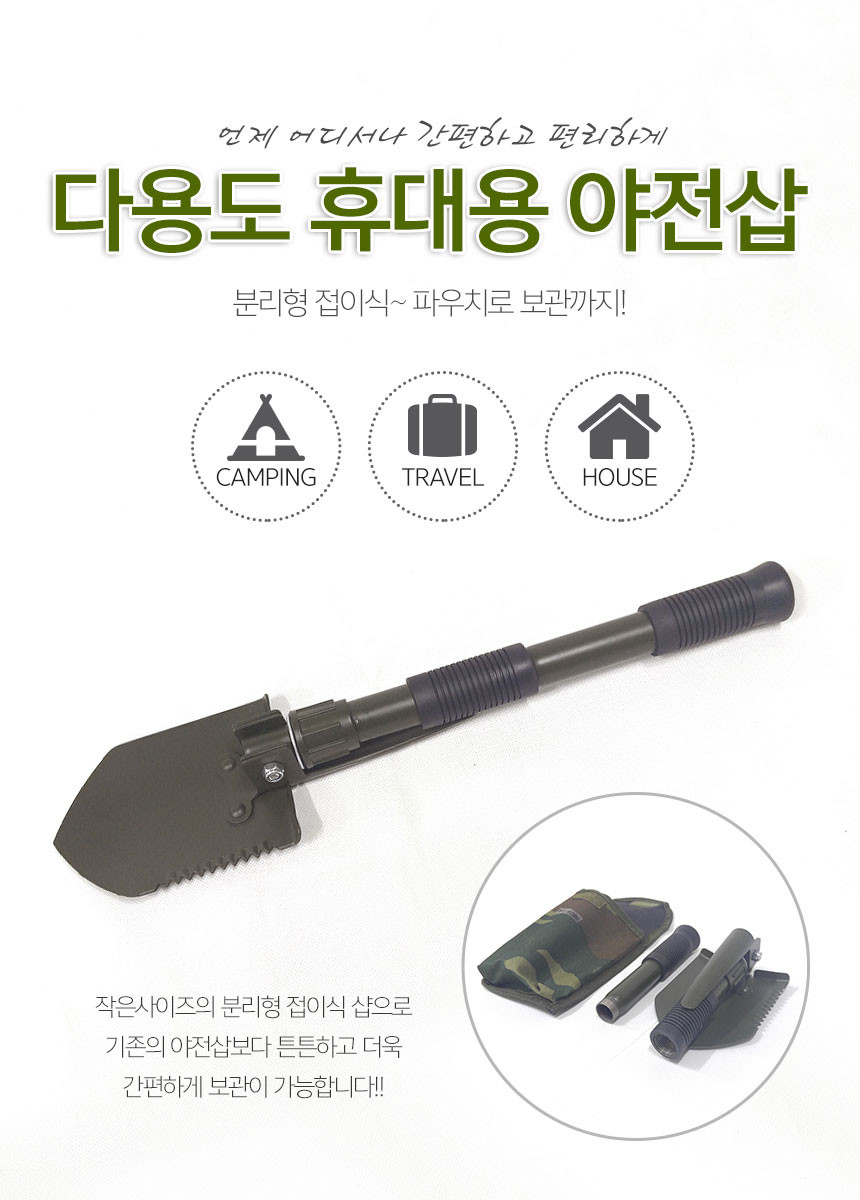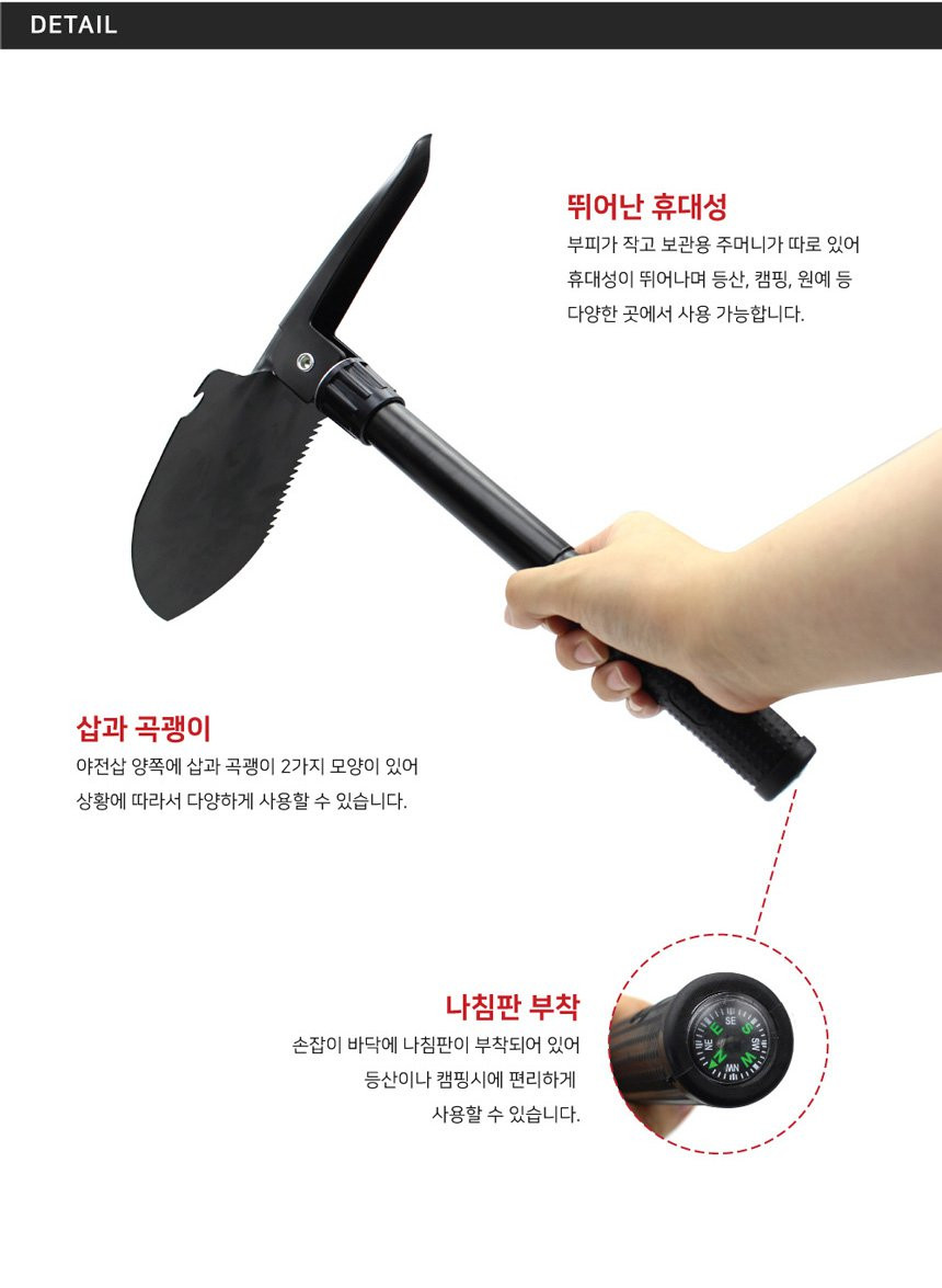 나침판 야전삽 휴대용 곡갱이 다용도 부착 접이식 군용 캠핑 삽 여바라
