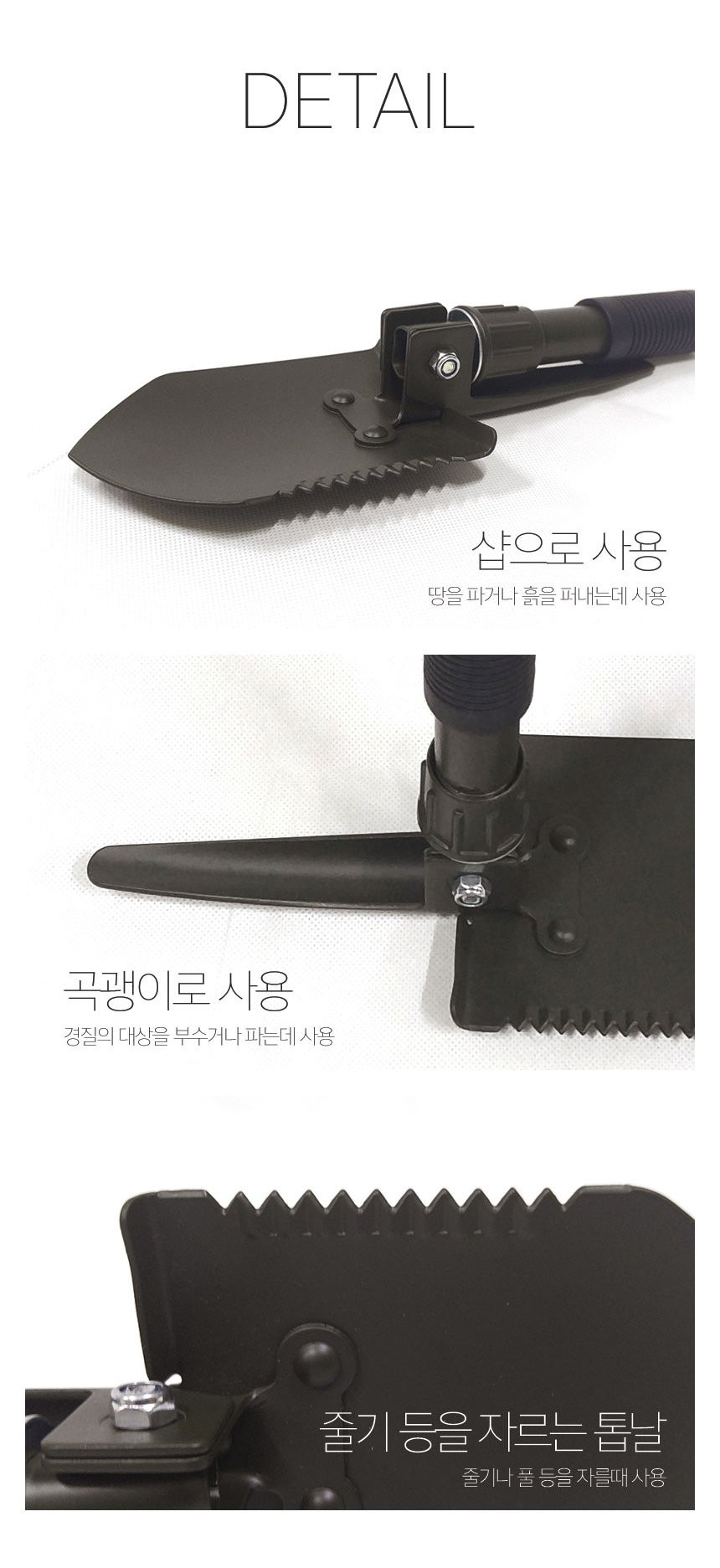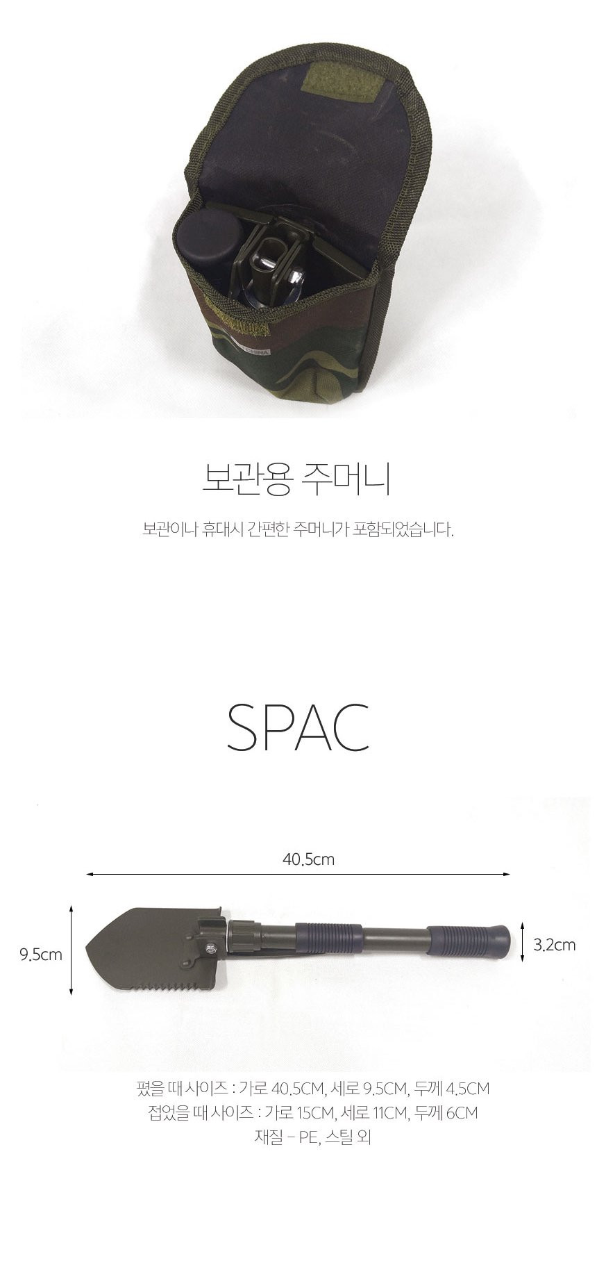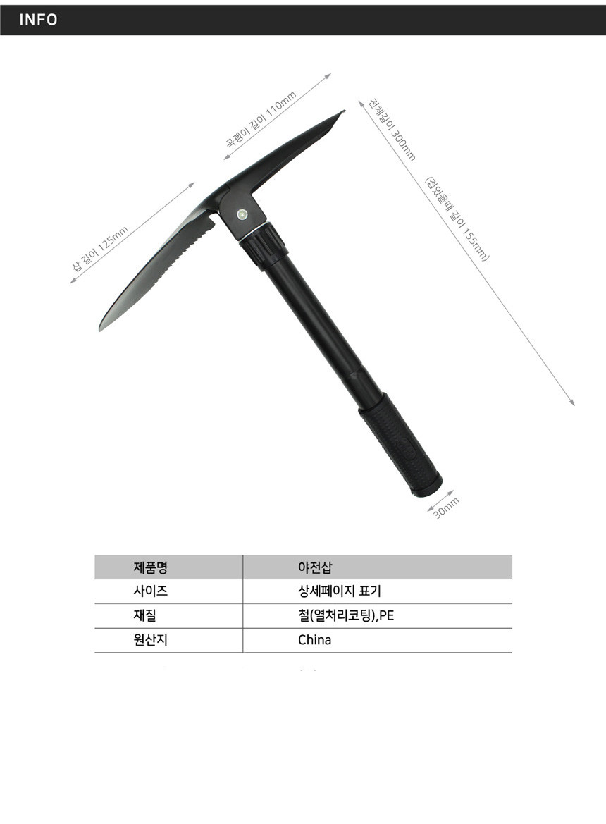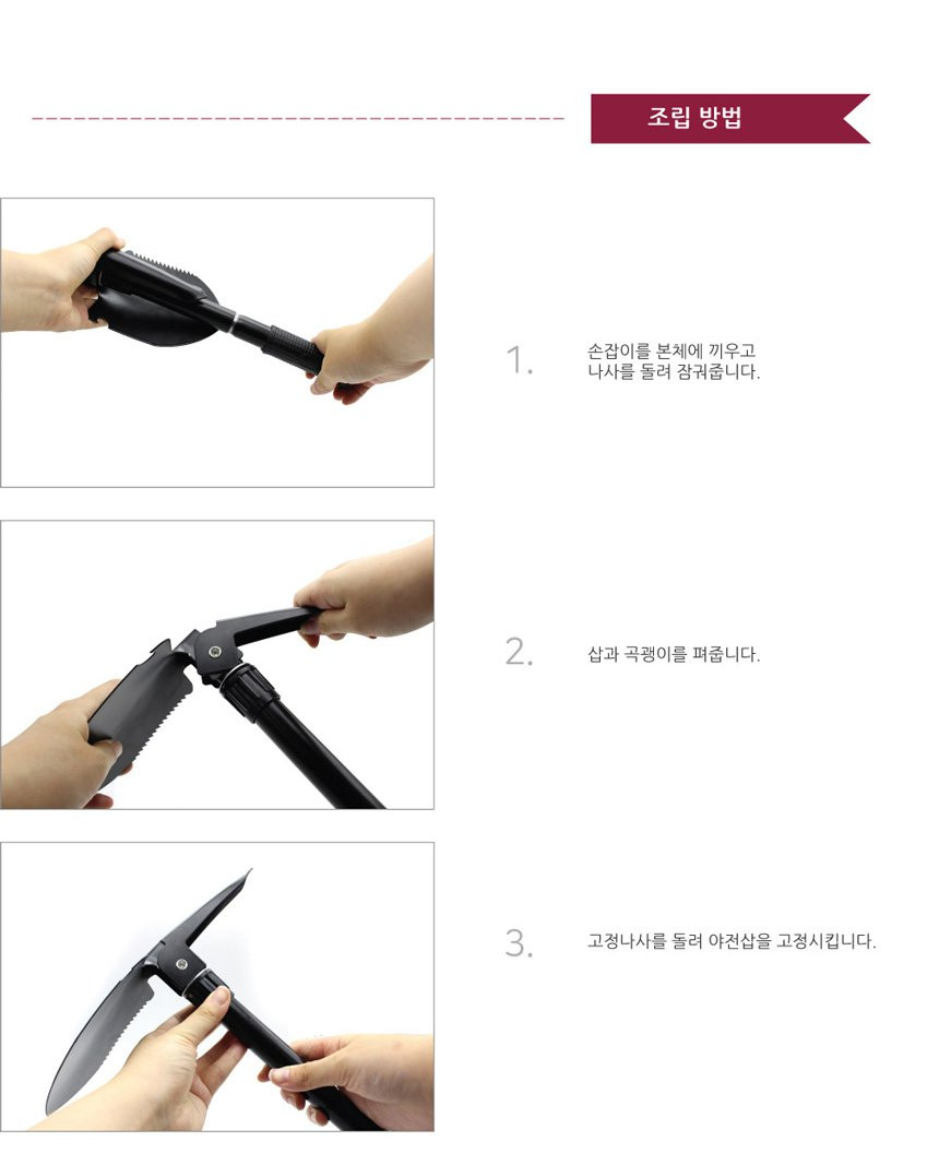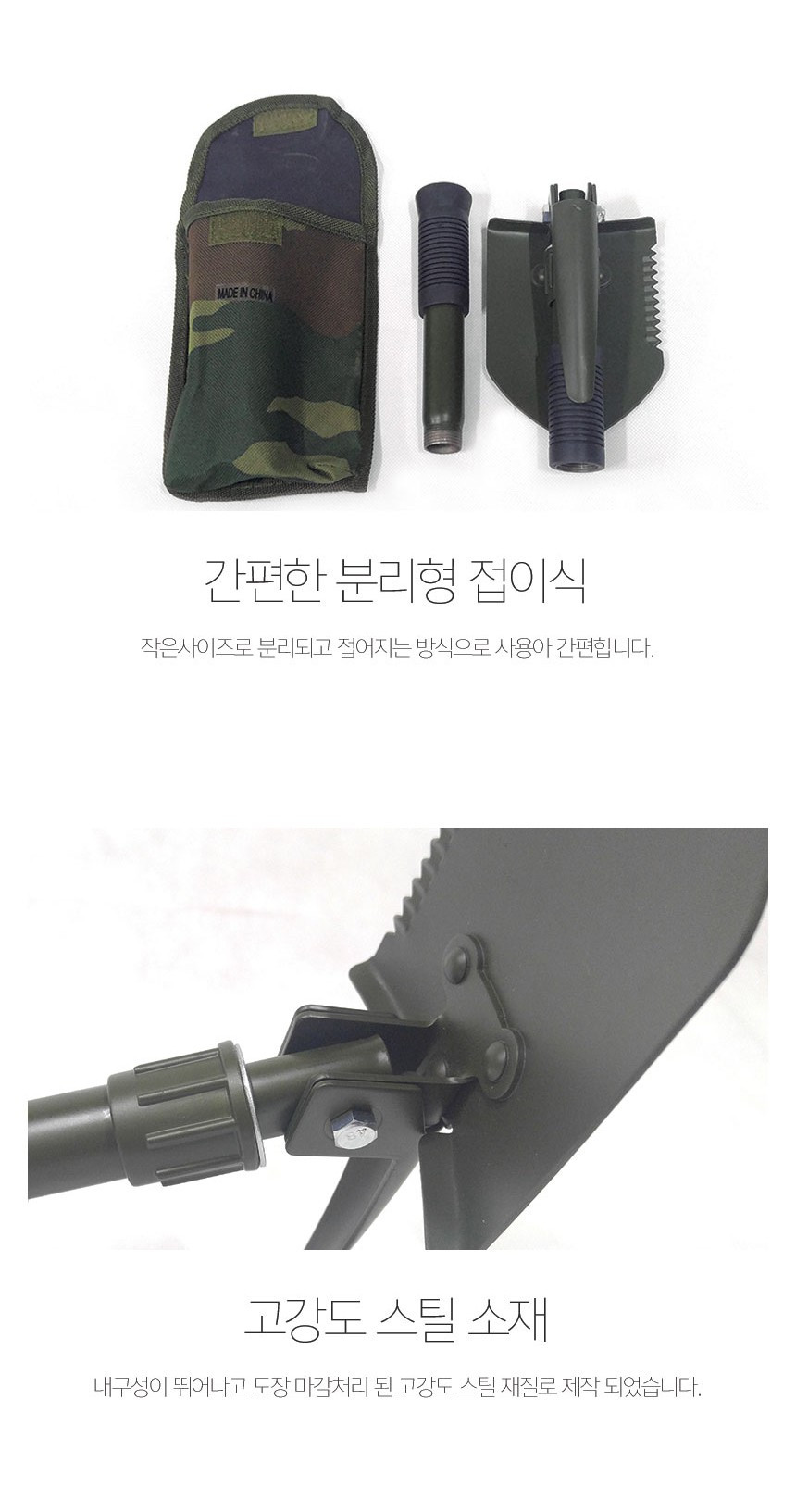 나침판 야전삽 휴대용 곡갱이 다용도 부착 접이식 군용 캠핑 삽 여바라